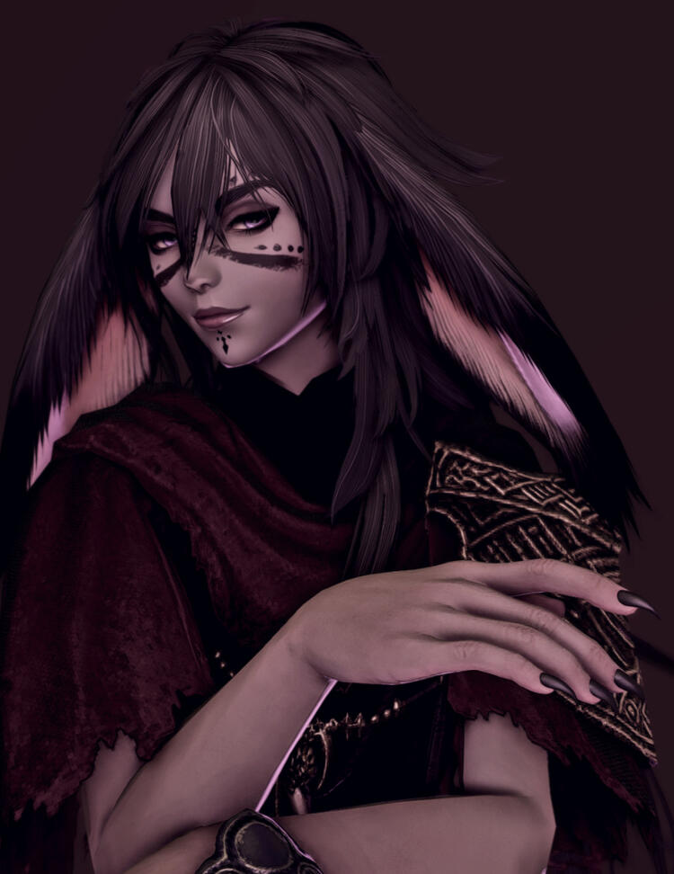 Grayson was born deep within the forests of Golmore, beloved and doted on by his many older sisters. He was smaller than most of his kin and with a timid nature that kept him from socializing with the other kits in the village. More often than not he could be found in one of his sister’s shadows, following after them to garner their attention.When he came of age, he was the only one to be taken from the village that season. The Rava chose the name Róman for himself and has long since forgotten the name his mother gave him. He adapted quickly to the harshness of the woods with his mentor, who taught him how to survive without the comforts and convenience of a village’s resources. Róman’s weapon of choice was the bow, and his quiet nature only served to aid in his stealth, though he did develop a bit of a temper during the years of his training. All too quickly he was given the mantle of a Warder, and took on the title of Djt-Gilda. Whether or not he was prepared for the role remained entirely up to the forest and the tutelage of his mentor.--During his first years alone in the woods, he was saved by another Warder after a deadly mistake nearly cost Róman his arm. The other introduced himself as Ölvir Rehw-Gilda. He was fifty years Róman’s senior, with bright red hair adorned by countless feathers. Ölvir suggested that the two work together for a time based on the common grounds of their titles. Stubborn and flustered, Róman first tried to refuse the help of the other man. He could hardly tolerate the other’s presence and wanted nothing more than to go back to his isolation. But, a day turned to two, then a week, and in time they formed a close bond, until the pair exchanged their declarations of affection beneath starry skies one summer night.After many more years together, the two Warders came upon an empty village on the border of Nagxia, just outside of their shared territory. They had no reason to explore beyond the bounds of the wood but curiosity got the better of Ölvir, and he easily convinced Róman to explore the village with him for no more than a few bells of their time. What should have been simple reconnaissance became a nightmare.A single woman was found to be residing in the village, with mangled hair and a crooked smile that sent shivers down the Warder’s spine; a w̷̽͆̍̍̉͠i̷̺͚͊̋̇̒͘͝ţ̴̢̧̤̓̆̊͗c̷̡̲̘͙̤͂̒ḥ̴̈́̎͝ and a powerful sorceress by her own declaration. Being in her mere presence unnerved the two Warders but she would not allow them to leave. The witch with no name took control of Ölvir and threatened to do the same to Róman unless they made a deal. There appeared to be no other choice but to fight or accept her dark proposal. Róman chose to fight, as futile as it seemed. And while he was able to subdue the witch, the price was hefty, and in the end wove a desperate tale. Ölvir lost his life and Róman was cursed, his eyes turned lavender and his fingers stained a deep black. He gained extraordinary powers, but in order to make use of them required massive amounts of aether.Grayson refuses to speak of the ill events of how it was he came to be exiled from the woods. Tales spread of the death of two Warders and the mysterious blight which spread from an abandoned village on the border of Nagxia.--It was in Nagxia that Róman adopted the nickname Grayson. He wanted nothing to do with his old Warder life after Ölvir’s passing. For a time he assisted in the resistance efforts by the scattered villages of Nagxia, even helping coordinate counter attacks against Garlean forces. It gave him something to do and kept both his mind and hands well occupied. A goal to put his focus into and forget about his exile. He learned new skills, chiefly metal working, and made great efforts in understanding what magicks he was capable of.A chance encounter allowed Grayson to meet the Novoya siblings, Valentinis and Ivanis. The two Hrothgar had long since been forced from their home in the Northern reaches and had the same plans of rebellion and revolution as many of the Nagxian people did. The three often fought together, and while Valentinis and Grayson seemed to despise the other in casual conversation, they were a deadly pair on the field of battle.The years became a blur of gunpowder and talk of a formal resistance before the trio separated to walk their own paths. The brothers stayed to help form what would come to be known as the Bozjan Resistance, and Grayson had plans to travel to Eorzea with the promise he would return should the brothers call on him. He was given the name of a Thaumaturge in Ul’dah who could help cure him of his curse. As soon as he was able, he booked passage to Eorzea and said his goodbyes to the Novoya brothers.--Grayson is often described as a difficult man to find, even if you know where to look for him. If not at his hidden workshop in the Ul’dahn alleys, he is said to have been spotted frequenting the home of a beloved Conjurer in the Lavender Beds.